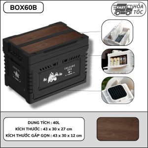 Thùng Nhựa Xếp Gọn Saigon Outdoor - Đã bao gồm mặt gỗ 60L - Thùng Đựng Đa Năng Dã Ngoại Để Cốp Ô Tô -