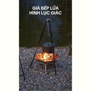 – Thiết kế chắn gió inox giúp giữ lửa ổn định ngoài trời.