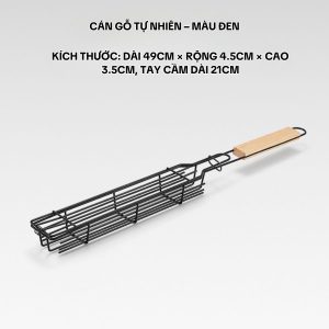 Vỉ nướng xúc xích, hotdog, giỏ nướng BBQ cán gỗ – Dụng cụ nướng dã ngoại tiện lợi - Saigon Outdoor -