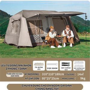 Lều Cắm Trại Tự Động 2 Phòng 1 Sảnh Lều Dã Ngoại Ngoài Trời Chống Mưa, Vải Dày, Thoáng Rộng, Tiện Mang Theo -