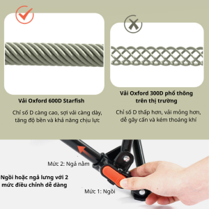 Chất liệu: Khung kim loại + Vải Oxford 600D + Bông Cotton