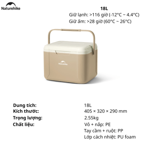 Thùng Đá Mini Naturehike Glamping Ice Cooler CNK2450CF012 18L – Giữ Lạnh 48H, Nhựa PP/PE Cao Cấp -