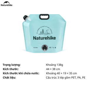 Túi Đựng Nước Gấp Gọn Naturehike 10L Có Vòi Siêu Nhẹ, Chống Rò Rỉ, Dùng Cắm Trại/Trekking -
